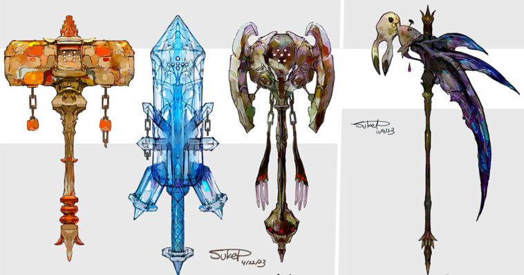 Pokémon, la franquicia del mismo nombre, cuenta ya con más de mil. Si bien la décima generación debería estar a la vuelta de la esquina en un futuro próximo, la licencia parece lista para evolucionar. Una bendición para los jugadores veteranos, que habrán tenido que esperar algunas décadas antes de ver esta iniciativa que surge tras la mala respuesta de las últimas producciones. Pero Pokémon es, sobre todo, un universo rico y de culto cuyas criaturas aún inspiran sueños, más de 25 años después de su debut. Una licencia que inspira, como este artista que imagina armas épicas basadas en Pokémon existentes. Mimiqui como guadaña, Golemastoc como martillo, Regice como espada, armas nacidas de la mente de Kosuke Nakamura y compartidas en sus redes sociales. Creaciones de éxito que podrían encajar de maravilla en una franquicia ARPG como Dragon’s Dogma, Monster Hunter o incluso Dark Souls. Se pueden descubrir 44 armas justo debajo, y más en la cuenta de Instagram de Nakamura, aquí mismo.