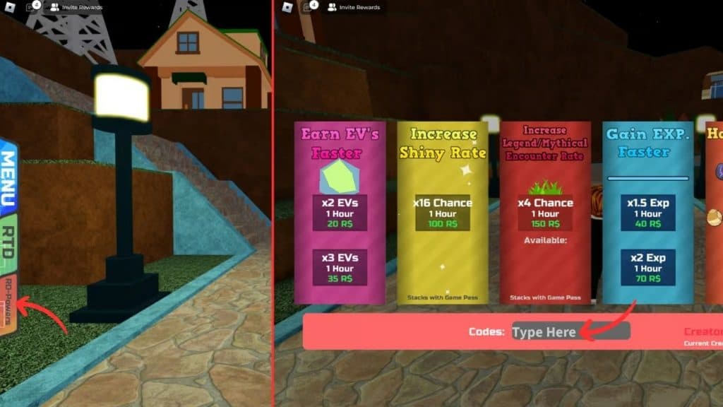 Antes de ingresar al juego, únete primero al grupo Get Noobed Games. Luego, debes vencer al primer campeón de gimnasio para desbloquear la opción de ingresar códigos. Una vez hecho esto, simplemente sigue estos pasos:
