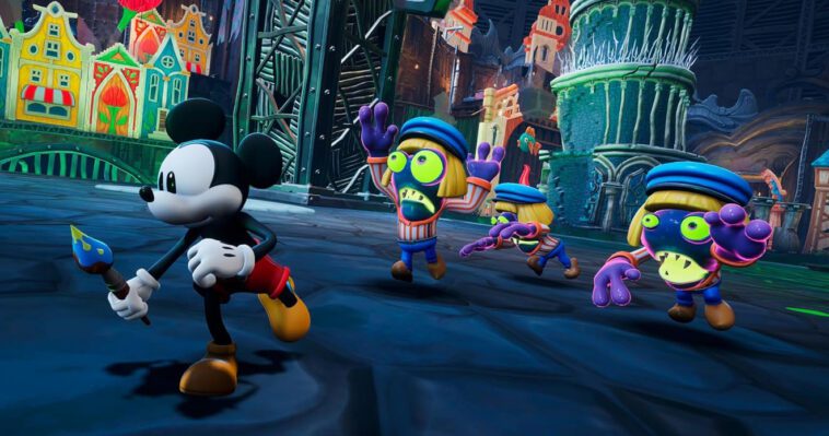 En cuanto a la historia del juego, te sumerge en el mundo de Wasteland, un reino secreto poblado por personajes de Disney olvidados como Oswald, el Conejo de la Suerte. Juegas como Mickey armado con un pincel mágico. Tendrás la posibilidad de crear, diluir y transformar como desees para darle forma a tu aventura en este mundo alternativo. Podrás modificar tu entorno y revelar secretos ocultos. También debes saber que el progreso de la historia puede verse influenciado por las decisiones que tomes a lo largo de la aventura.