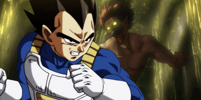 Por supuesto, haz que Eren se enfrente a la versión actual de Vegeta en Dragon ball super no tendría mucho sentido, considerando lo poderoso que es el personaje. Además, entendemos que Lo que motivó a Tom Barkel es la idea de que los dos personajes son capaces de transformarse en monstruos gigantes y temibles. (el titán asaltante para Eren, un mono gigante para Vegeta).
