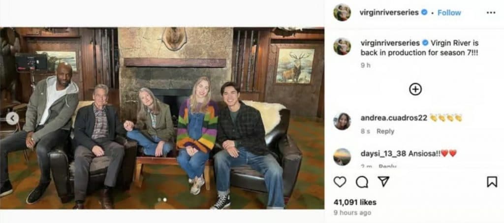 Instagram/Virgin RiverEsto no significa que haya que entrar en pánico. Si bien la famosa pareja por su indecisión no aparece en las imágenes, el final de la sexta temporada sugiere que sin duda regresarán en los nuevos episodios. Además, la actriz Zibby Allen volvió a compartir una de las fotos en sus historias de Instagram.
