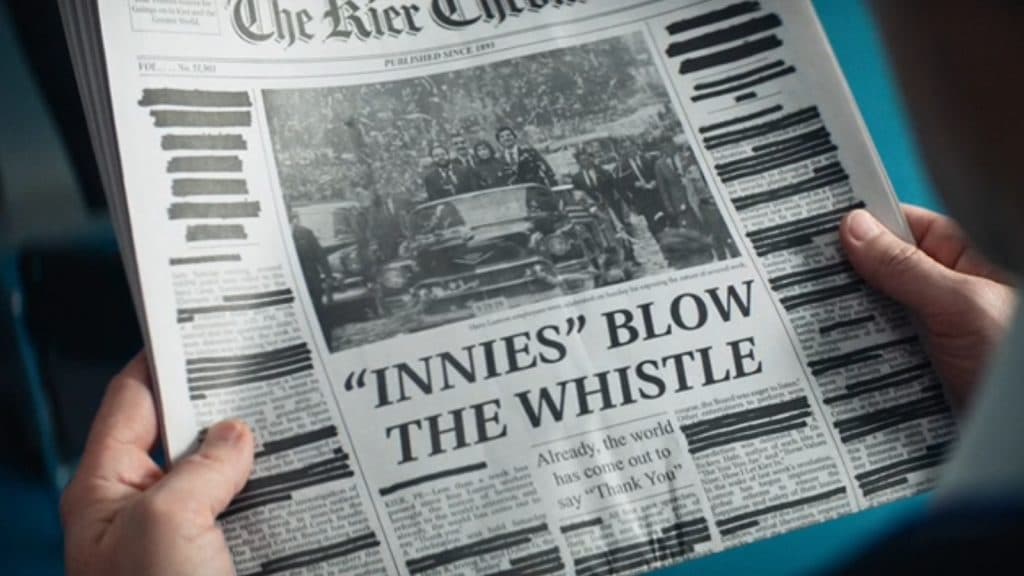 Algunos fans han interpretado la aparición de un ejemplar del Kier Chronicle en el episodio 1 de la temporada 2 de Severance como una prueba de la época en que transcurre la serie – pero el periódico no es en absoluto fiable.
