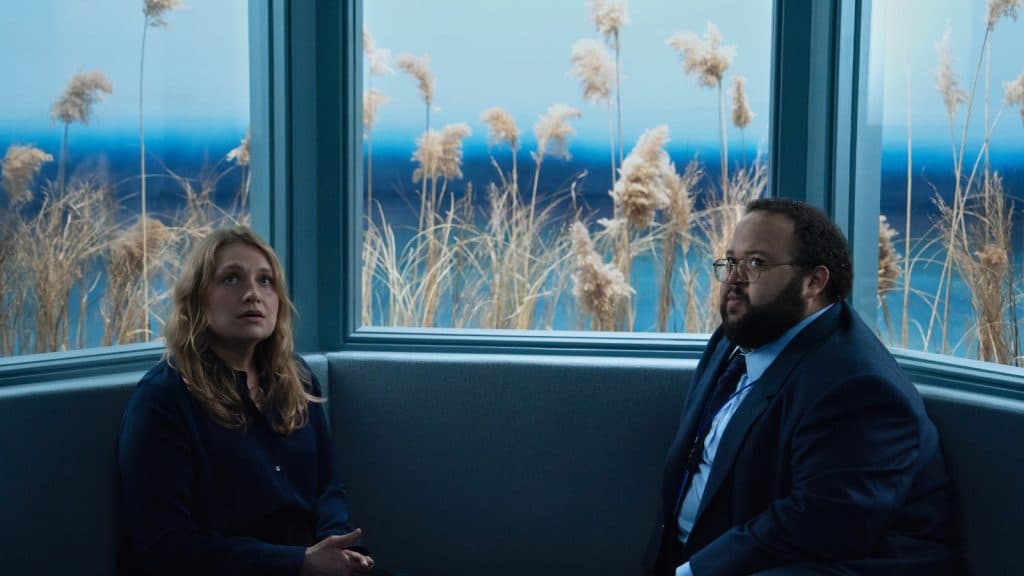 Apple TV+Al entrar en la sala de la última secuencia, Mark descubre un lugar dispuesto de manera simétrica, con Harmony esperando en el centro.