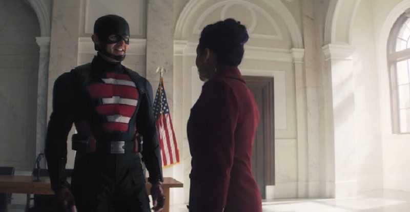 La Fin de la temporada 1 de Falcon and the Winter Soldier nos muestra a Sam y Bucky en la ciudad natal de Sam con vista al mar. Falcon and the Winter Soldier escena post-créditosSharon Carter recibe el perdón total del gobierno y se une a su antigua división. La serie cuestiona si el mundo aceptará a un hombre negro como el Capitán América. Sam se pone el disfraz de Capitán América y salva el día. Cuando aparece por primera vez en público, un hombre negro lo llama Halcón Negro. Sin embargo, otro hombre no está de acuerdo y lo llama Capitán América.