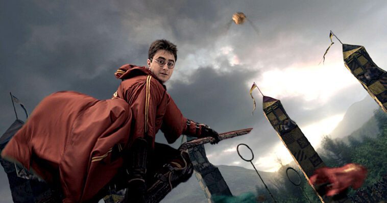 Como recordatorio, el Quidditch es un deporte imprescindible en el mundo mágico y lo vimos por primera vez en la película Harry Potter y la piedra filosofal. Es un deporte que se juega en el aire, donde 2 equipos de 7 jugadores compiten sobre escobas voladoras y lo pudimos apreciar en todo su esplendor en la película Harry Potter y el Cáliz de Fuego. Recordamos perfectamente varias escenas memorables como aquella en la que vimos a Harry Potter atrapar su primera Snitch Dorada.