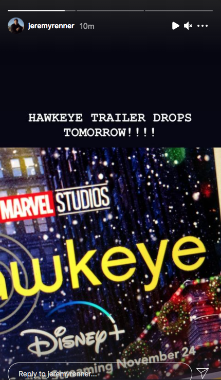 Se une a Jeremy Renner, quien también se burló de la llegada del tráiler en las redes sociales.