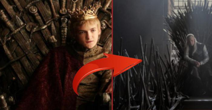 Durante el primer episodio de CALIENTE, Inmediatamente notamos que el Trono de Hierro es enorme, imponente e impresionante, cuando Daemon y su hermano, el Rey Viserys I Targaryen, están instalados en él. Las espadas que adornan la fila son mucho más numerosas, y las esparcidas por todas partes no están presentes en la versión de Game of Thrones. En este último, el asiento parece más pequeño.
