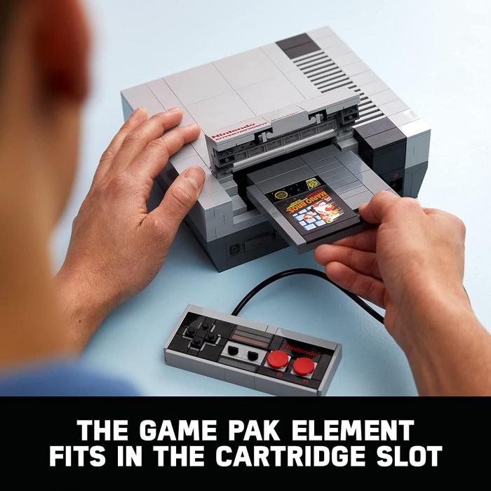 En cuanto al set LEGO Nintendo Entertainment System, se trata de una preciosa réplica detallada de la famosa consola de videojuegos de los años 80 que tendrás que construir utilizando pequeños ladrillos. Este set incluye la consola con un gamepad, un televisor retro que muestra una figura de Mario en 2D de 8 bits e incluso una ranura para insertar un cartucho de juego.