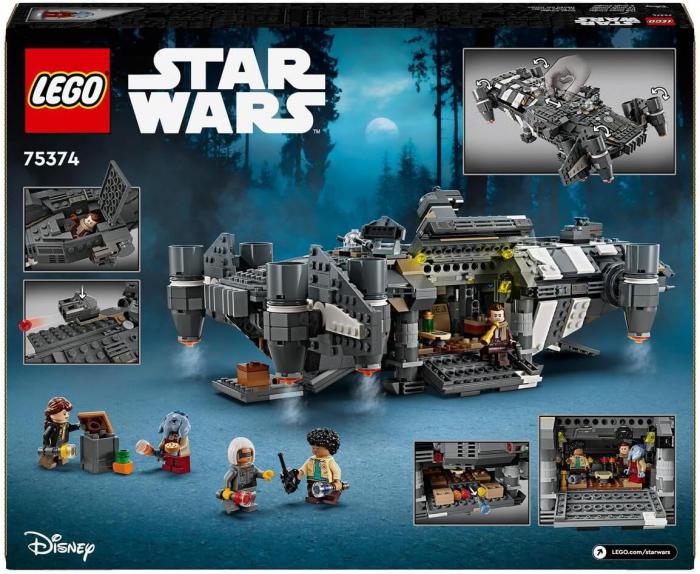 En cuanto al set LEGO Star Wars: Skeleton Crew The Onyx Cinder, está compuesto por 1325 piezas, por lo que tendrás que tomarte tu tiempo para completarlo sin equivocarte en las numerosas piezas que tienes a tu disposición. Y en cuanto a dimensiones, mide nada menos que 36 cm de largo, por lo que necesitarás buscar un buen lugar para exponerlo. También destacamos los numerosos detalles, como los motores giratorios, dos cañones, dos torretas giratorias con dos cañones cada una y una pinza para agarrar objetos. En cuanto a la cabina, también puede albergar una minifigura. También hay un compartimento de pasajeros para acomodar a otros miembros de la tripulación.