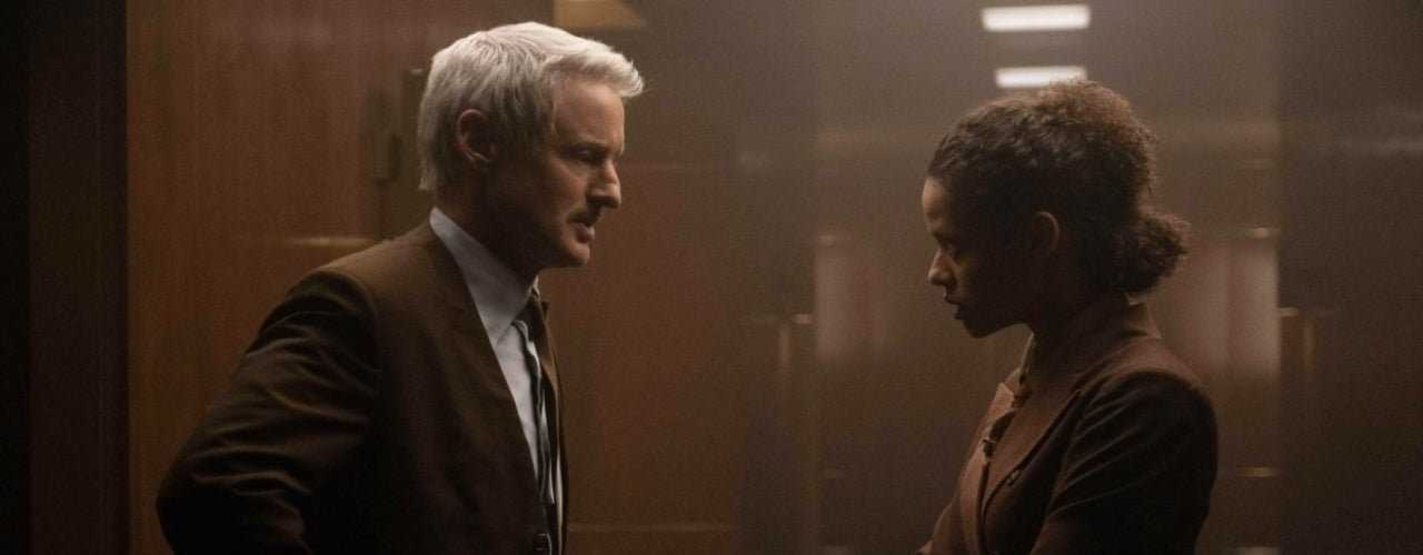 Owen Wilson (Mobius) y Gugu Mbatha-Raw (Renslayer) reaccionan a la traición en el episodio 4 de Loki.