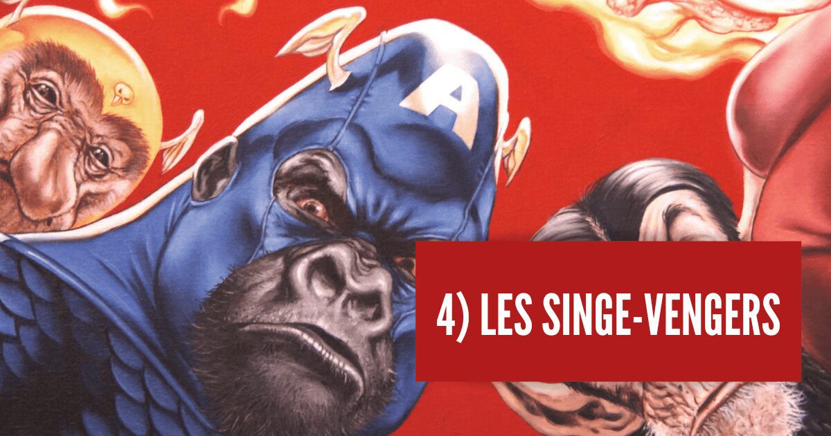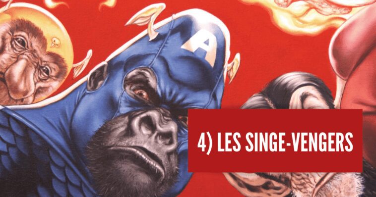 Tras el éxito de Marvel Zombies, la Maison des Idées ha querido apostar por esta receta ofreciendo un nuevo universo alternativo, esta vez dejando de lado a los zombies para poner el protagonismo en… los monos. Esto da lugar a la Tierra-8101, también conocida como la Tierra de los simios, descubierta en la serie de cómics Marvel Apes de 2008. En esta realidad alternativa, los simios son, por lo tanto, la especie dominante. Así podemos encontrar a los personajes emblemáticos de Marvel en su versión simiesca, con por ejemplo Nick Fury que se convierte en Nick Fourrure, pero también a los Vengadores que ahora son los Singevengers (o Ape-vengers en VO), con Iron Mandrill en lugar de ‘Iron Man’. También está Thorang-outan, el nuevo dios asgardiano del rayo, o incluso Spider-Monkey, y muchos más.