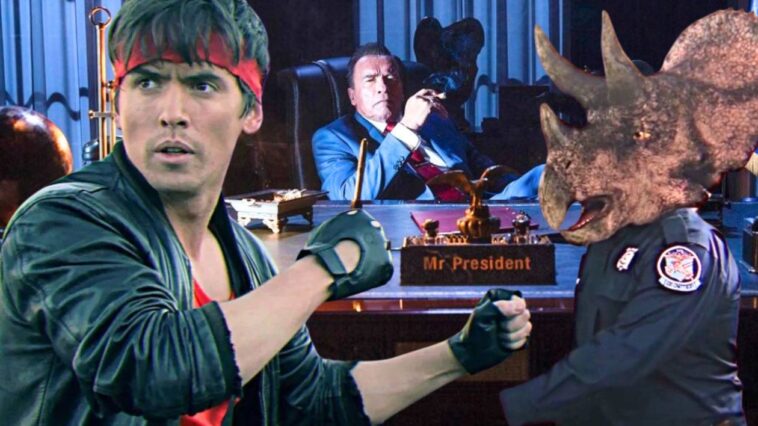 Arnold Schwarzenegger como presidente de los Estados Unidos ultra-violento, Michael Fassbender en un Colombo de la muerte, David Hasselhoff que salva perritos en medio de una batalla de mechas-Transformers, T-Rex peleando a través de las eras, un Power Glove y Carpenter Brut sonando a todo volumen sobre cinta VHS… Estas son algunas de las delicias que ofrece el tráiler XXL de Kung Fury: The Movie, que dura 10 minutos y ha sido filtrado en la red (cuidado, contiene algunos spoilers).
