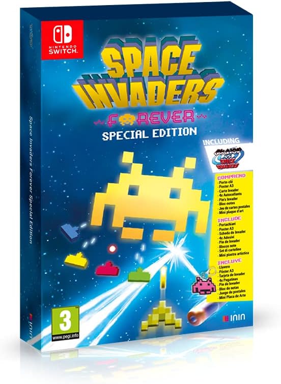 Si tienes nostalgia de los juegos arcade de los 80 y te gustan los clásicos de la retrogramación, te encantará la caja Forever Special Edition del videojuego Space Invaders, ¡que actualmente está a la venta por solo 19 euros! Esta caja de coleccionista contiene tres versiones del famoso shooter espacial, que te traerán recuerdos de tu infancia y también podrás disfrutar de las nuevas funciones en la versión de Nintendo Switch.