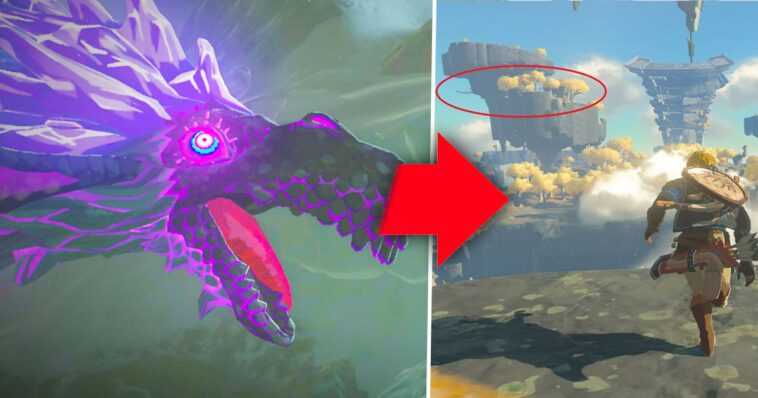 Desde el cuadragésimo segundo de este nuevo tráiler, Link abre dos puertas enormes antes de precipitarse a través de un área aún nueva. Una zona aérea que los jugadores podrán descubrir el 12 de mayo, en Nintendo Switch. Y en el segundo 49/50, precisamente, se puede ver, al fondo, la cola de un dragón. Una secuencia rápida que conviene analizar detenidamente para localizar dicha cola. Un reptil ubicado en la parte superior izquierda de la pantalla, detrás de las dos enormes rocas flotantes.