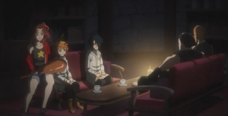 Norman está de regreso después de que todos asumieron que había sido devorado por demonios. Su repentina entrada hace llorar de alegría a Emma cuando encuentra a su amiga perdida. ¡Ray, Emma y Norman se abrazan! Los demonios que los persiguen resultan ser humanos y Emma los lleva a su escondite. Norman luego continúa su conocimiento de los demonios experimentando con ellos en Lambda.