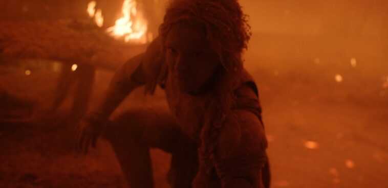 Las bolas de fuego se disparan por el aire y chocan contra el pueblo, haciendo estallar la breve celebración en estallidos de rojo y negro. Toda la gente de las Tierras del Sur entra en pánico. Pero una silueta no se mueve. Justo cuando Adar se puso de pie y vio cómo se derrumbaba la torre. Galadriel ahora se encuentra en medio de los incendios y la destrucción, observando una ola de humo negro ondeante, salpicado de rojo sangre, que desciende de la montaña y cruza la hierba.