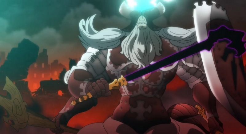 En el episodio 9, Chandler y Cusack se fusionan para volver a su primera forma, el demonio original. Gracias a su inmenso poder, el campo oscuro creado por Meliodas y los Mandamientos retrocede. Escanor se involucra en una lucha desesperada contra el Demonio original, quien se burla del Pecado del Orgullo al afirmar que a pesar de tener acceso a todas sus habilidades, Escanor no es rival para él. Escanor lanza Cruel Sun, que es fácilmente bloqueado por el Demon original.