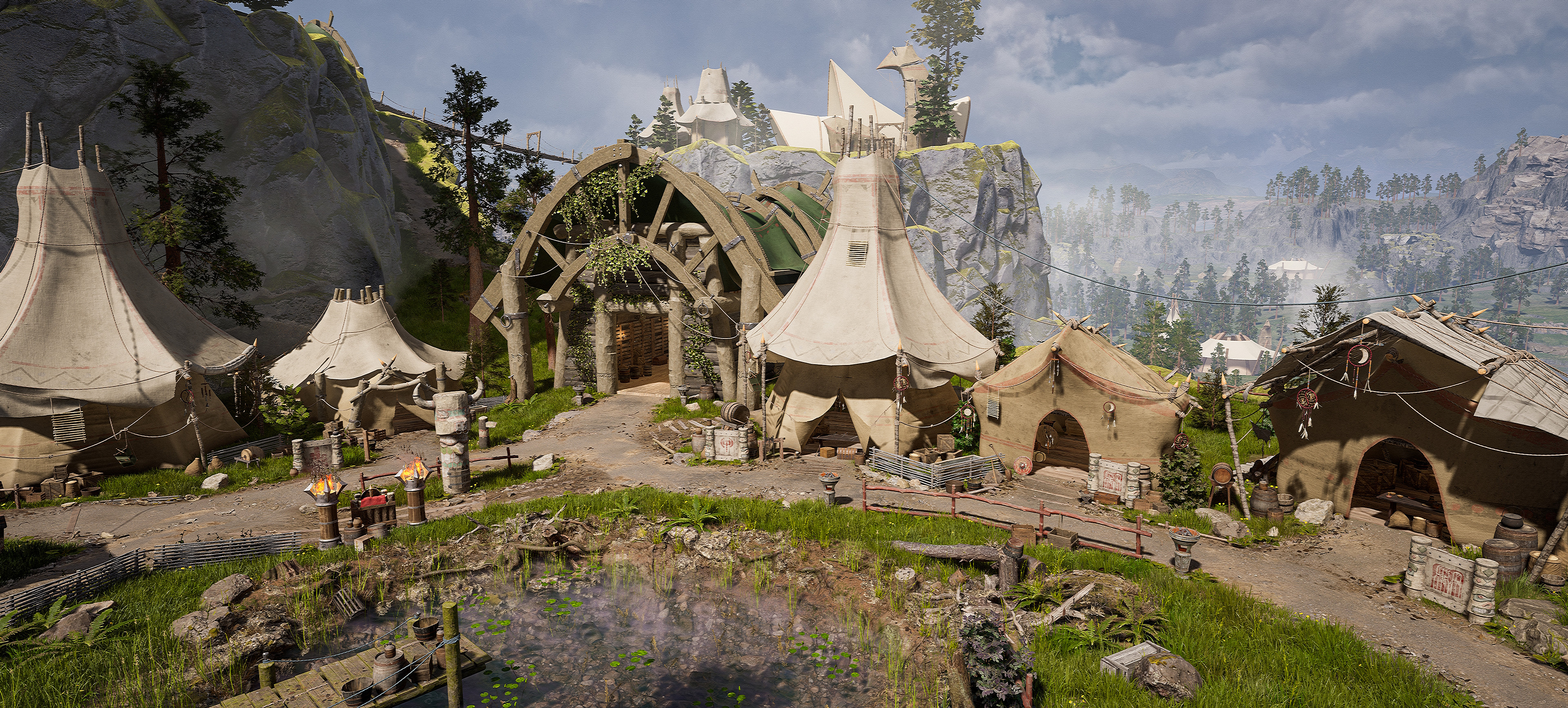 Como puede ver arriba en estas comparaciones, el rediseño gráfico cambia drásticamente el estilo original. Con realismo, perdemos un poco el efecto «caricaturesco» y cálido del bastión original del gremio, pero, por otro lado, la inmersión realmente funciona.